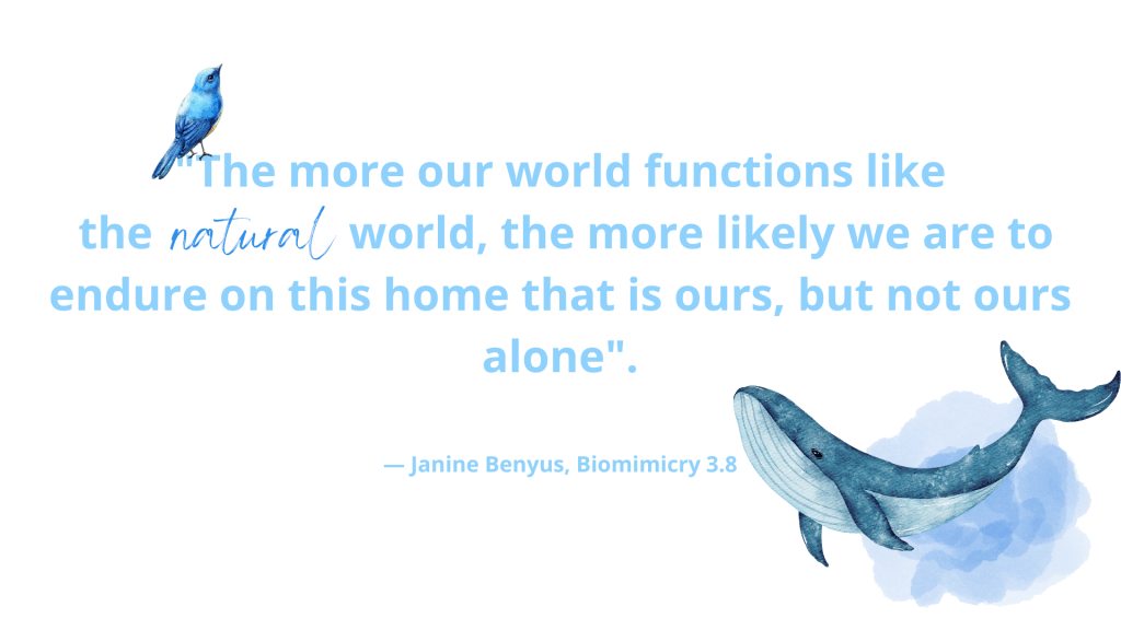 As a Certified Biomimicry Practitioner I am part of a global community of changemakers with an ambitious, beautiful, and worthwhile goal: steering the future of our world to one where all life can thrive.