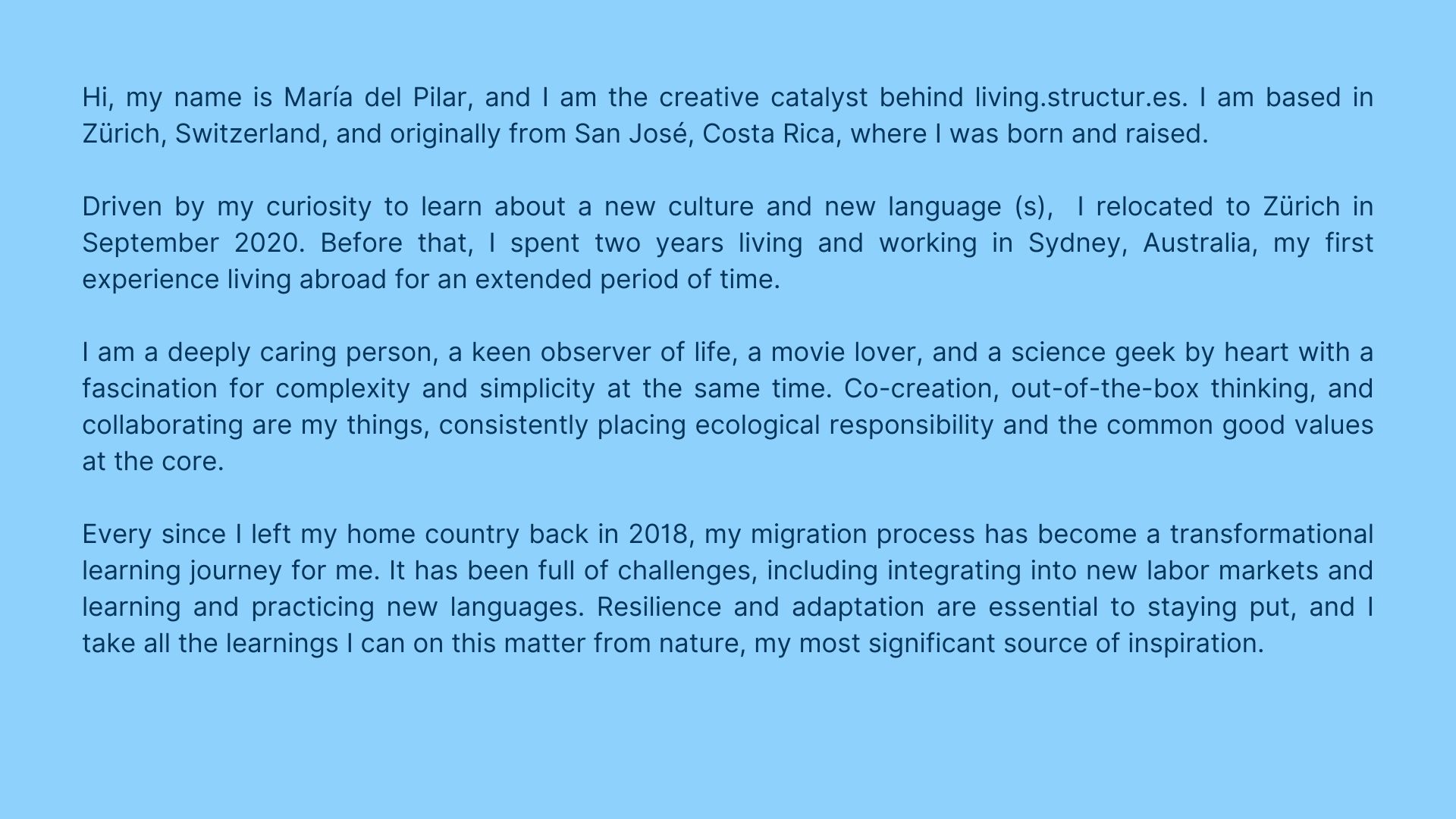 “Maria del Pilar is an experienced architect with high ethical standards and a passion for regenerative design, particularly in the fields of landscape architecture and sustainable communities. I perceived her as a dedicated, self-reflective, caring and empathetic people leader, very skilled at bringing people together and creating a positive work environment.”