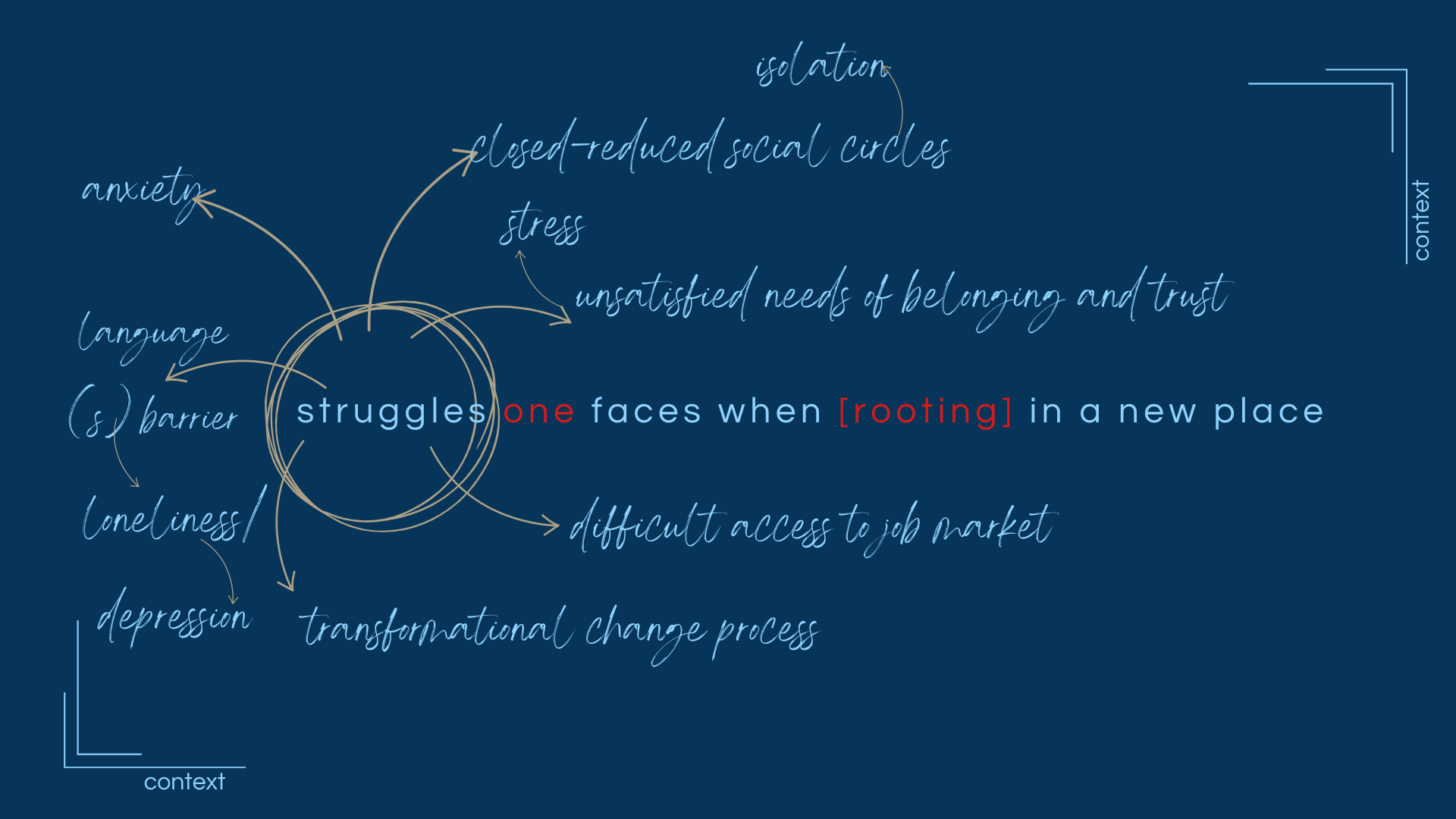 The [ frame ] shift decreases the time it takes people to recognize their need to ground themselves, to ameliorate their integration to their new host country and to ameliorate their integration to Nature, as part of Nature.